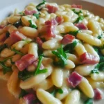 Quando penso ai cavatelli freschi con speck, rucola e crema di patate, mi viene subito in mente la cucina di mia nonna, il profumo delle patate appena lessate e la gioia semplice di condividere un piatto caldo, cremoso e genuino. C’erano sempre risate, mani sporche di farina, e quel momento magico quando la pasta si tuffava nell’acqua bollente. Adesso, ogni volta che preparo questa ricetta, è come rivivere quei pomeriggi—solo con qualche tocco personale in più (e una dose abbondante di parmigiano!).
