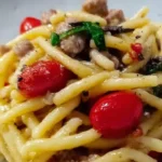 Ricordo con affetto le serate trascorse a casa di mia nonna, mentre il profumo del suo pasta con salsiccia, funghi e pomodorini riempiva l’aria. Le risate, i racconti di vita e un buon piatto di pasta rendevano ogni incontro speciale. Questo piatto semplice, fatto con ingredienti freschi e genuini, riesce sempre a far parte del menu della mia cucina durante le cene tra amici. Se anche voi desiderate portare un po’ di quel calore e di quella comunità nella vostra tavola, continuate a leggere: vi prometto che non vi deluderà.